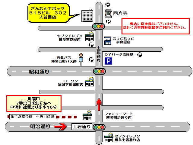 ①西鉄バス博多五町 下車徒歩3分 天神中央郵便局前バス停【18A&18B&18C】より150円。 ②地下鉄空港線中州川端駅 下車7番(川端口)より徒歩10分 ★グーグルマップで弊店を検索した場合、裏口に誘導されてしまいます。『西方寺』で検索してください! |